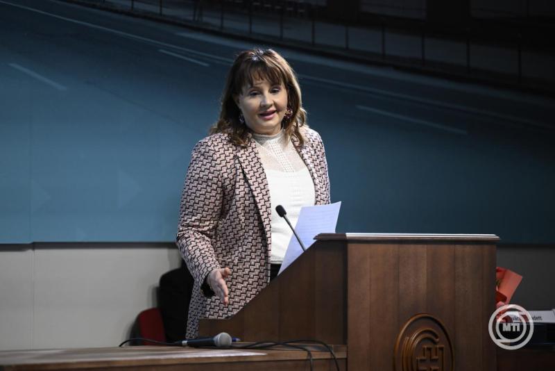 Budapest, 2026. február 19. Deli Mária, az Országos Kórházi Főigazgatóság ápolási és betegbiztonsági igazgatója beszédet mond a magyar ápolók napja alkalmából megrendezett I. szakdolgozói tudományos napon az Észak-Pesti Centrumkórház - Honvédkórházban 2026. február 19-én. MTI/Bodnár Boglárka